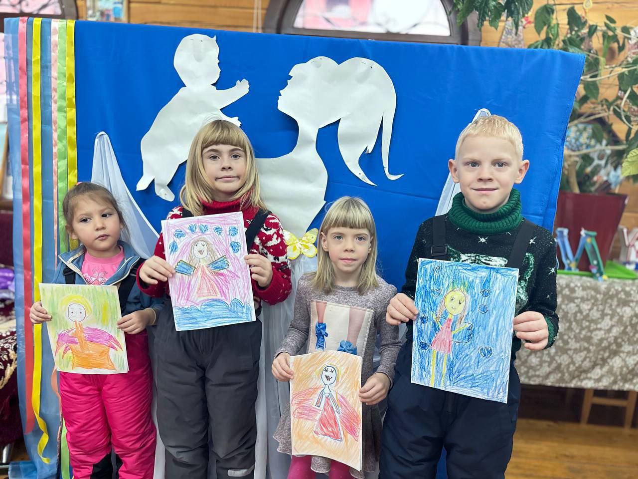 А самое главное - дети рисовали своих мам в виде Ангела Хранителя и забрали рисунки домой, чтобы подарить мамам.