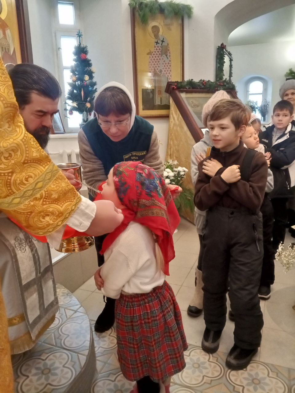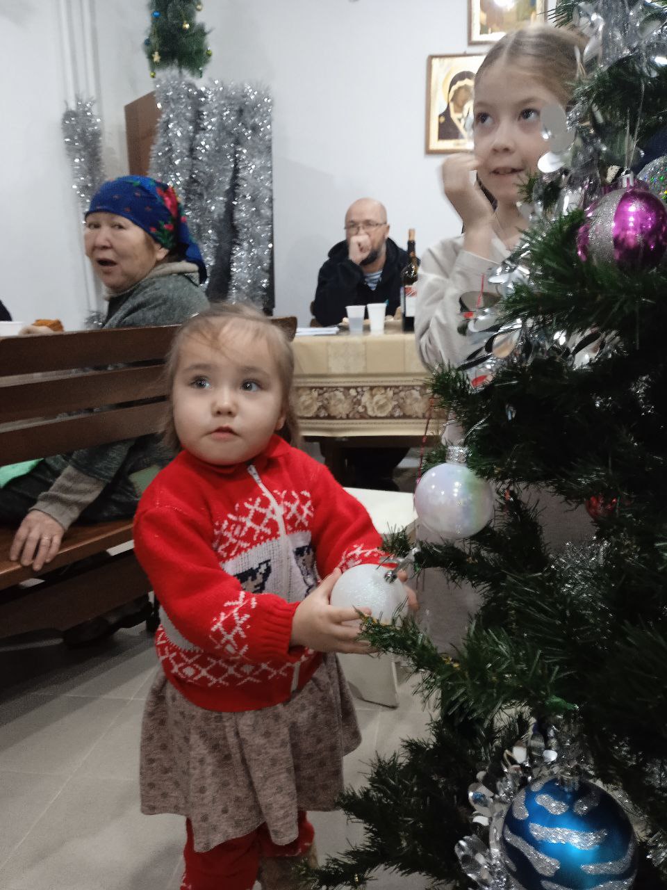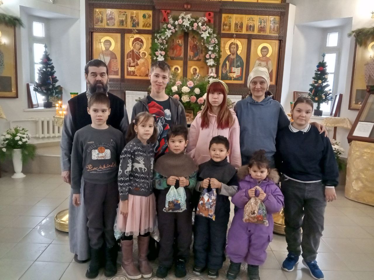 Присутствующие ознакомились с выставкой детских рисунков и поделок «Рождественское чудо». Затем с огромным интересом посмотрели Рождественское представление (сценка, викторина, игры), которое с детьми разыграли и взрослые. Вместе с настоятелем прихожане пели рождественские колядки. Дети и взрослые читали стихи, водили хороводы. После праздничной трапезы пожилые прихожане и все ребята получили Рождественские подарки от жертвователей. В Рождественском празднике приняли участие семьи, состоящие на учете на социальном сопровождении ОГБУ «УСЗОН по Эхирит-Булагатскому району».