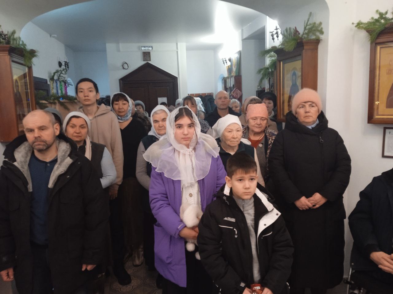 В благолепно оформленном храме Навечерие Рождества Христова, праздник Рождества Христова служил священник Николай Подымахин благочинный Усть-Ордынского Церковного округа, настоятель Усть-Ордынского храма. В Рождественский сочельник традиционно готовилось и раздавалось сочиво всем молящимся. Во время Литургии священнослужитель ознакомил усть-ордынцев с Рождественским посланием патриарха Кирилла и поздравил всех с праздником. После литургии на дому священник Николай Подымахин причастил маломобильную прихожанку.