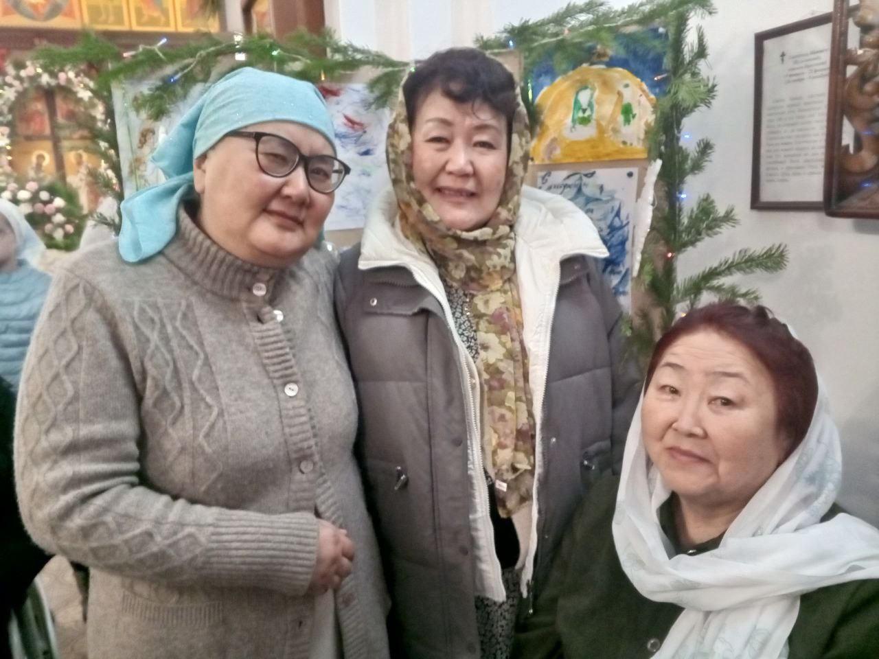 Второй священник Усть-Ордынского храма Павел Гладков совершил праздничные Богослужения в Тугутуйской Петропавловской церкви. После литургии, всех пригласили за праздничный стол. Взрослые и дети приняли участие в Рождественской концертной программе.
