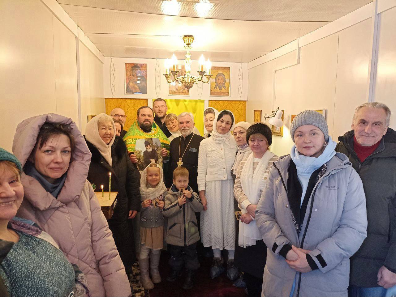В приветственном слове протоиерей Герман Кузнецов поздравил прихожан с престольным праздником, рассказал об основных событиях жития святого и подарил напрестольный крест на молитвенную память приходу. Этот крест пребывал в Свято-Георгиевском храме пос. Молодежный в течение всего периода его строительства, и храм был освящен в 2024 году.