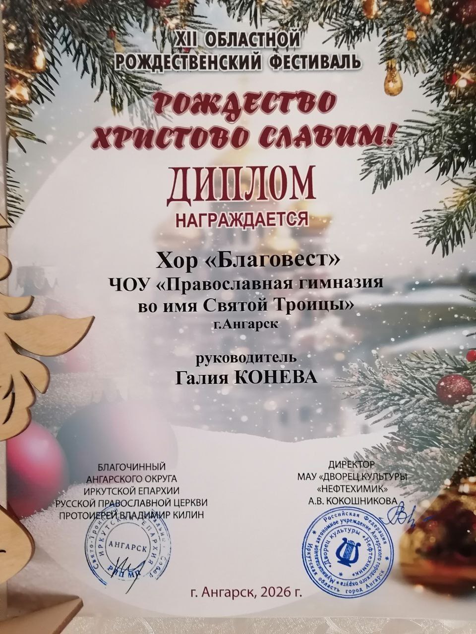 10 января 2026 года в Ангарском Свято-Троицком соборе прошло торжественное открытие XII Областного Рождественского фестиваля "Рождество Христово Славим".